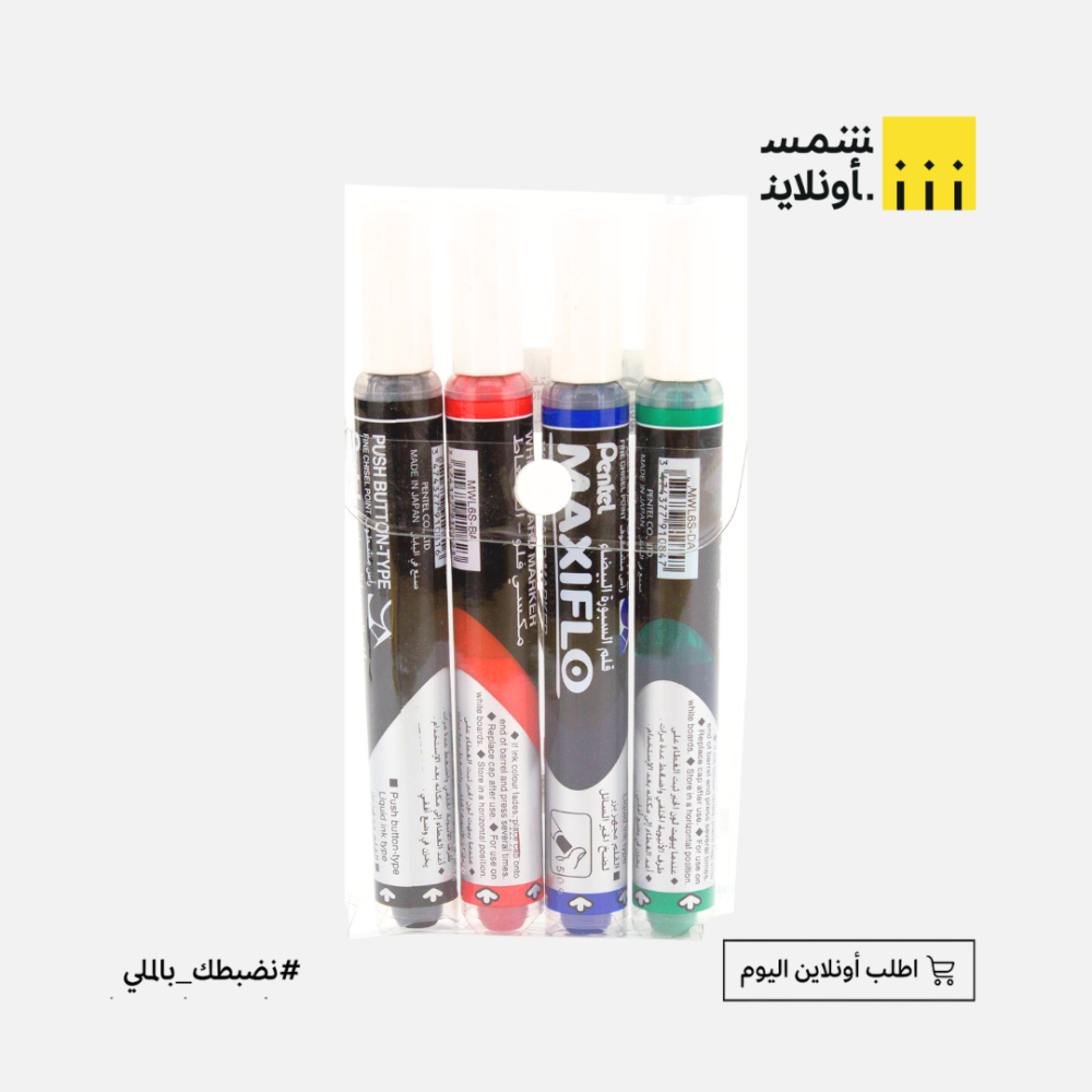 بنتل | أقلام سبورة ماكسيفلو نحيف | طقم 4 ألوان ضغاط